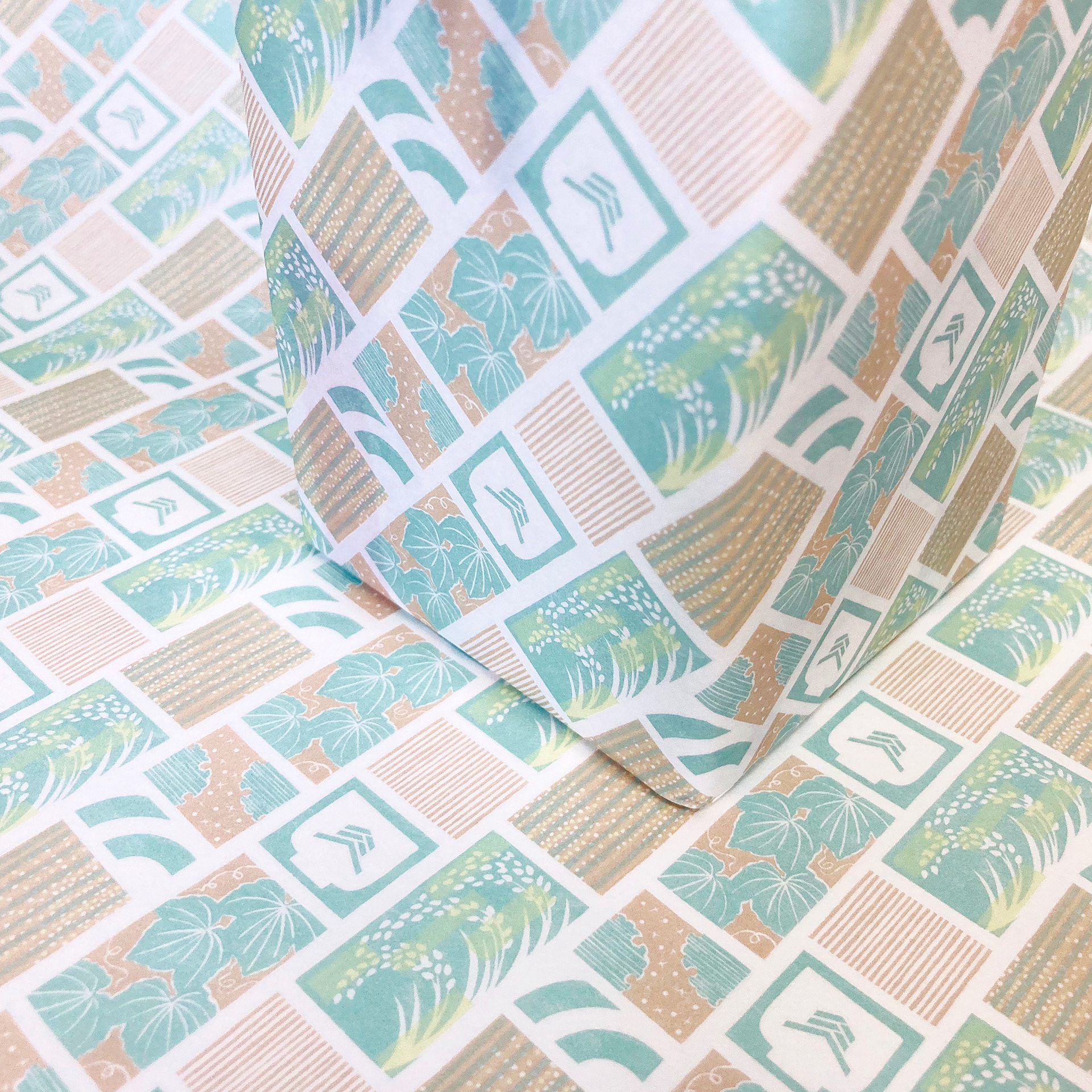 施設限定の包装紙の絵柄を木版画で制作いたしました。