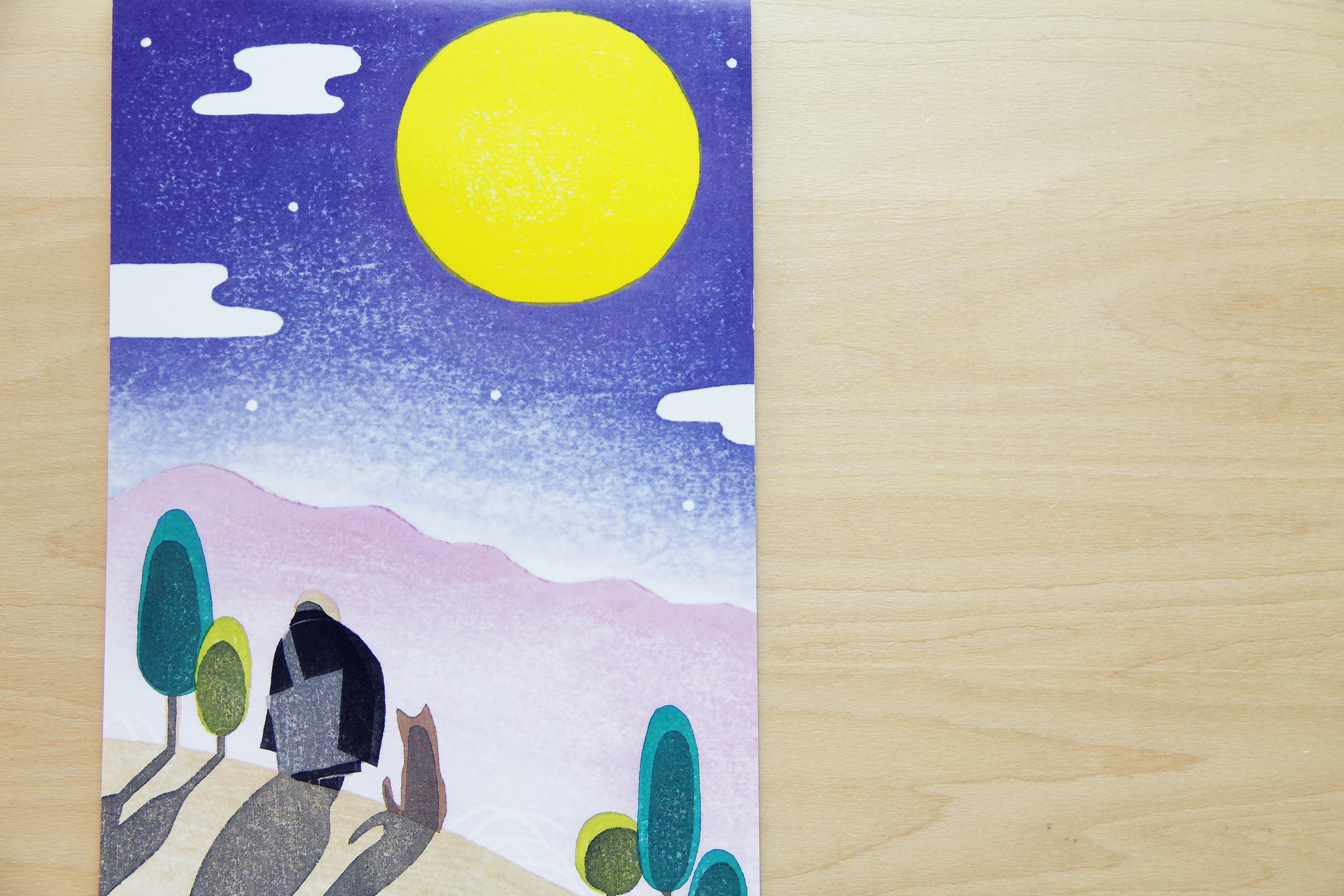 法然上人のお歌の情景をイメージして木版画で描きました。