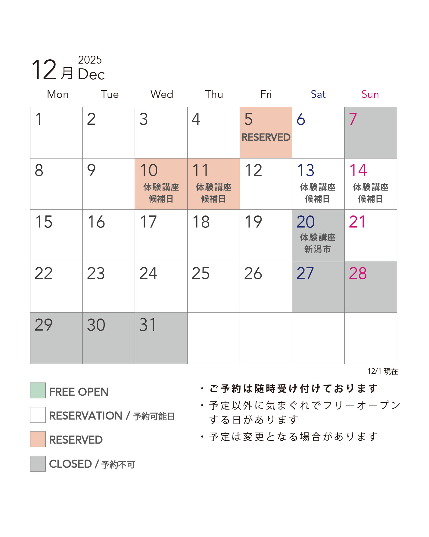オープン日 ご予約優先、不定期でフリーオープン日あり