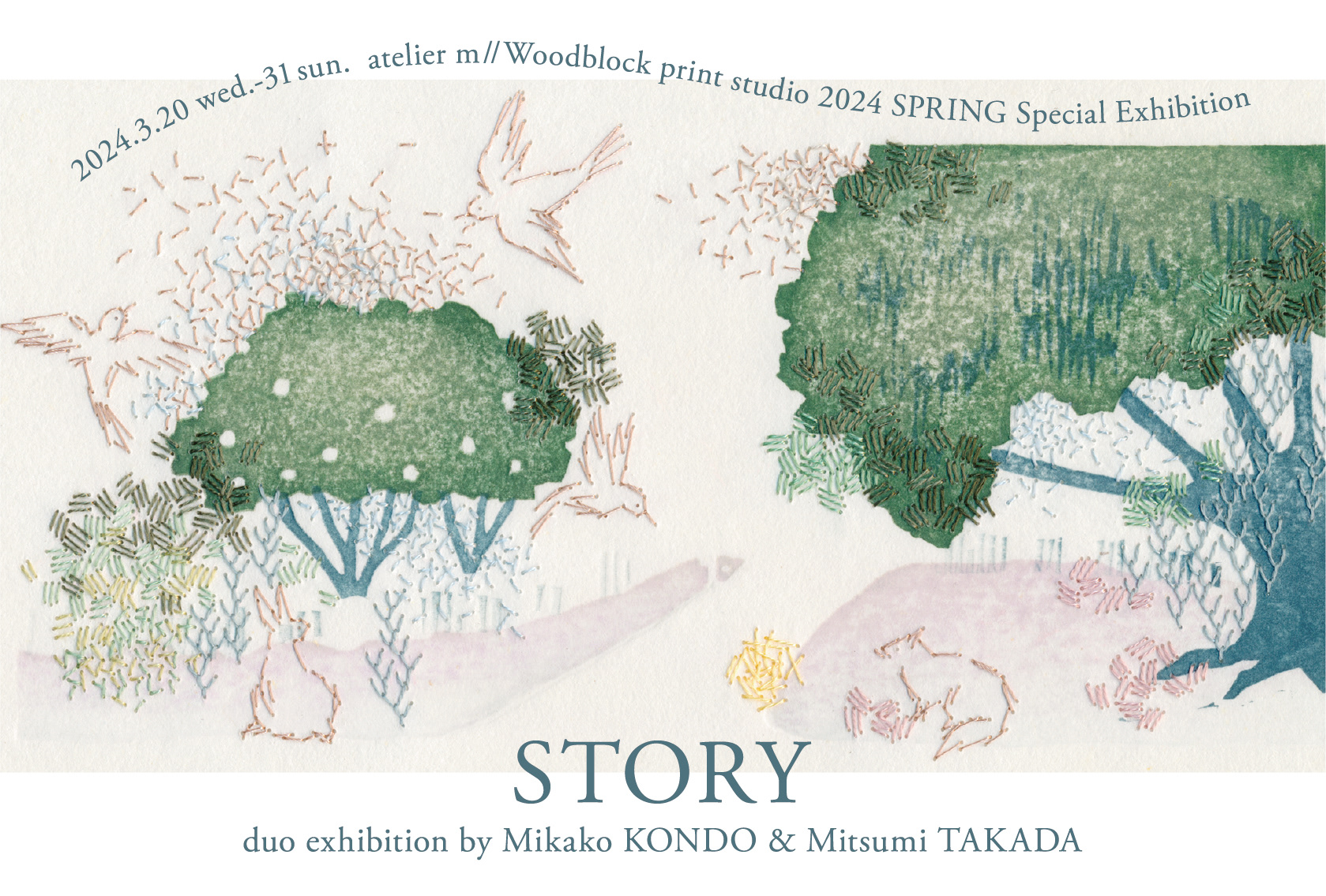 「刺繍・近藤実可子× 木版画・たかだみつみ 二人展 STORY」にて発表しました。