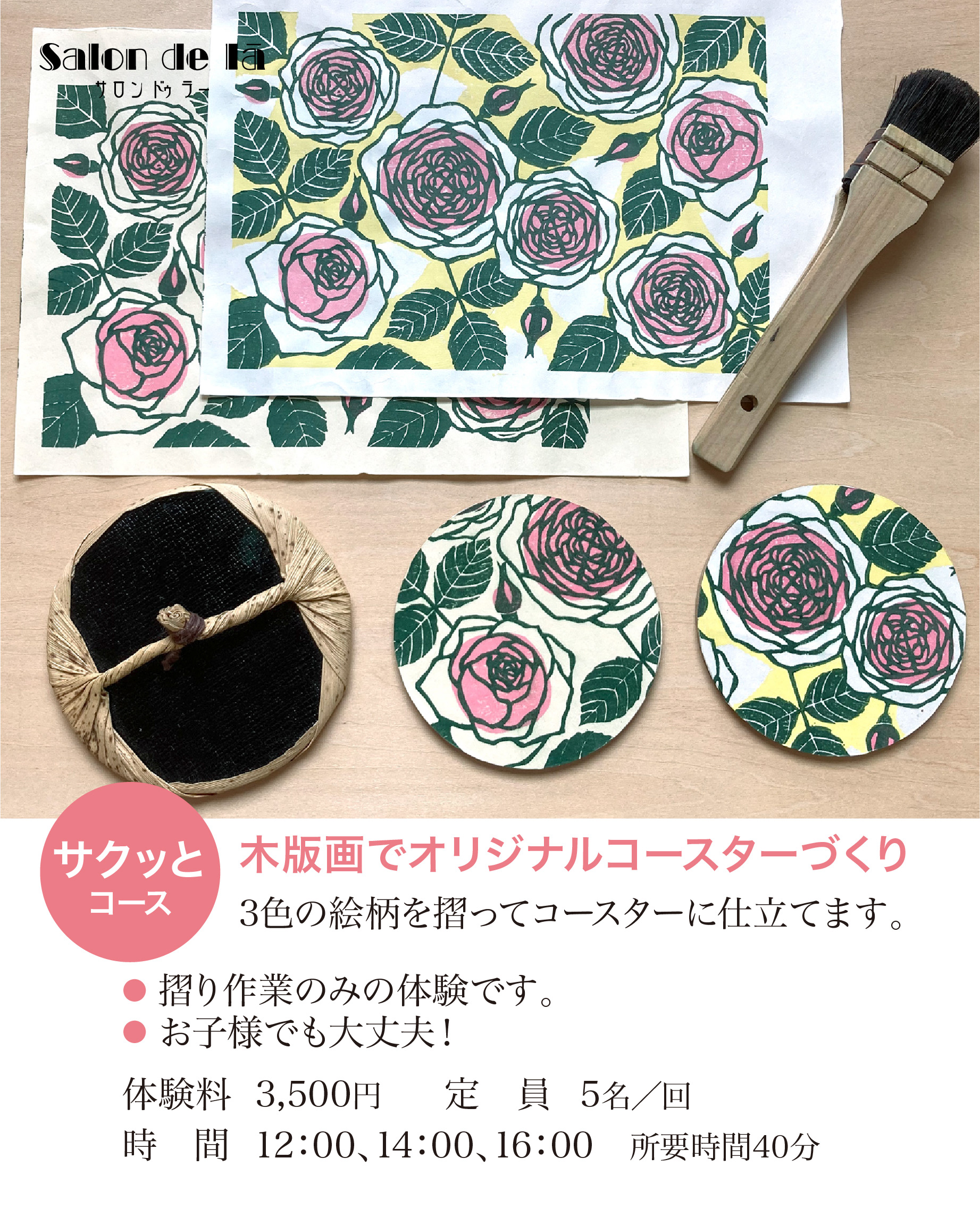 お馴染みのオリジナルコースターを作る講座ですが、いつもよりお得に体験できます!