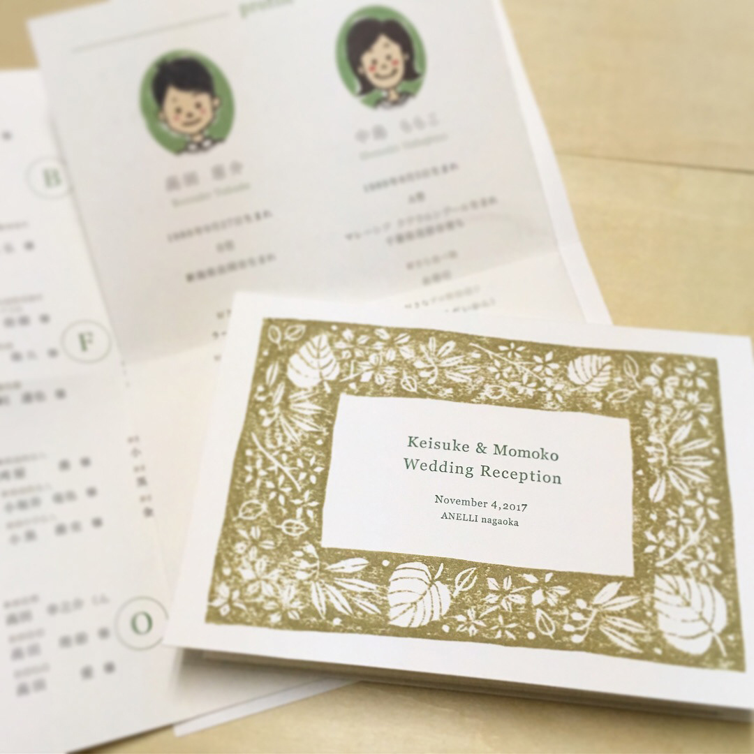 席次表のプロフィール欄には、お嫁さんリクエストで、写真ではなく似顔絵を描きました。